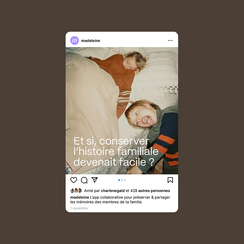Madeleine is a Master’s final project exploring the preservation of family heritage through design. The application enables users to build a living family tree enriched with stories, photos, and shared memories. Conceived as both a personal and collective archive, Madeleine fosters intergenerational connection while safeguarding memory for the future. Its visual identity blends softness and timelessness, balancing interface design, user experience, and the duty of remembrance.